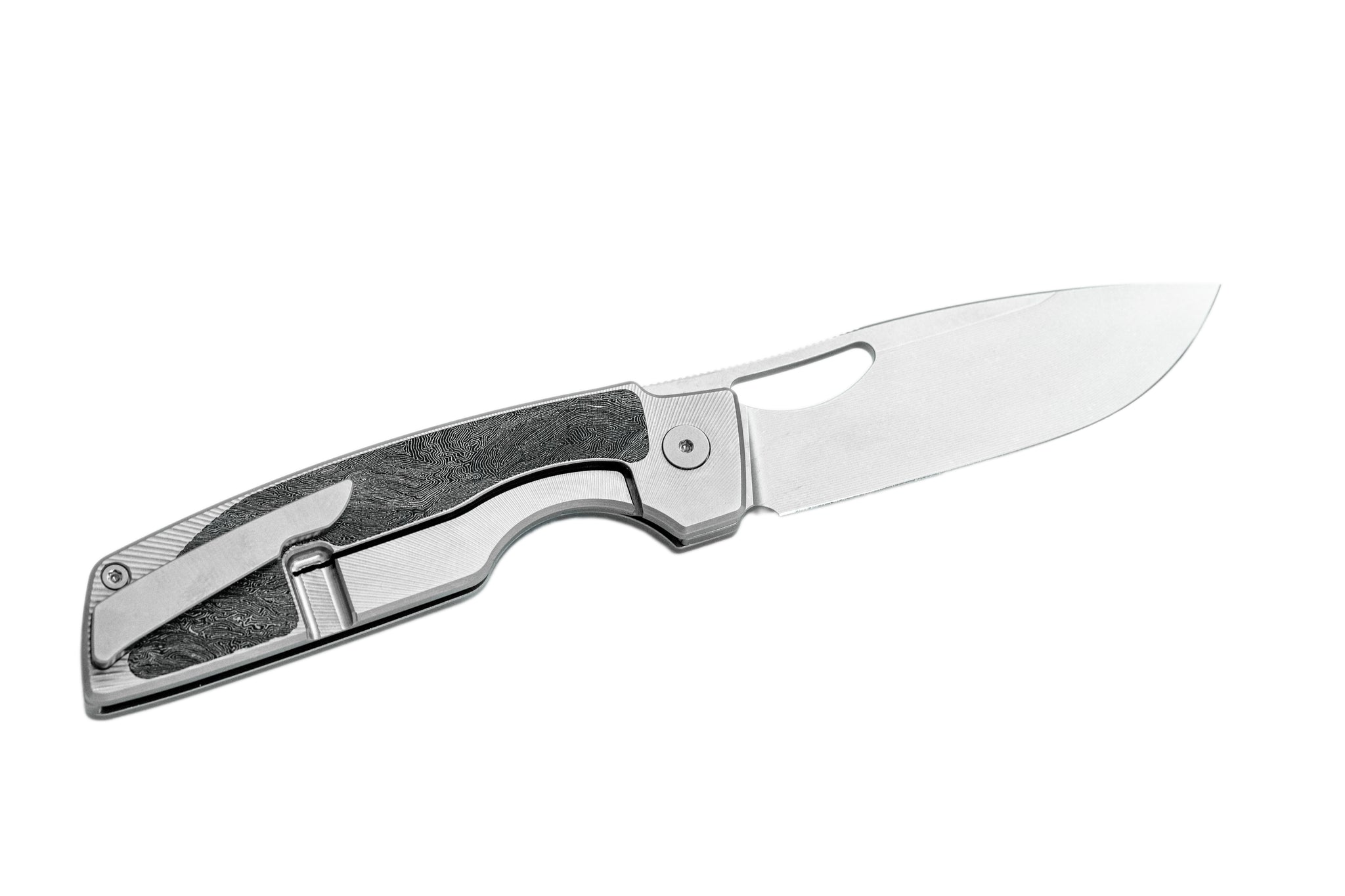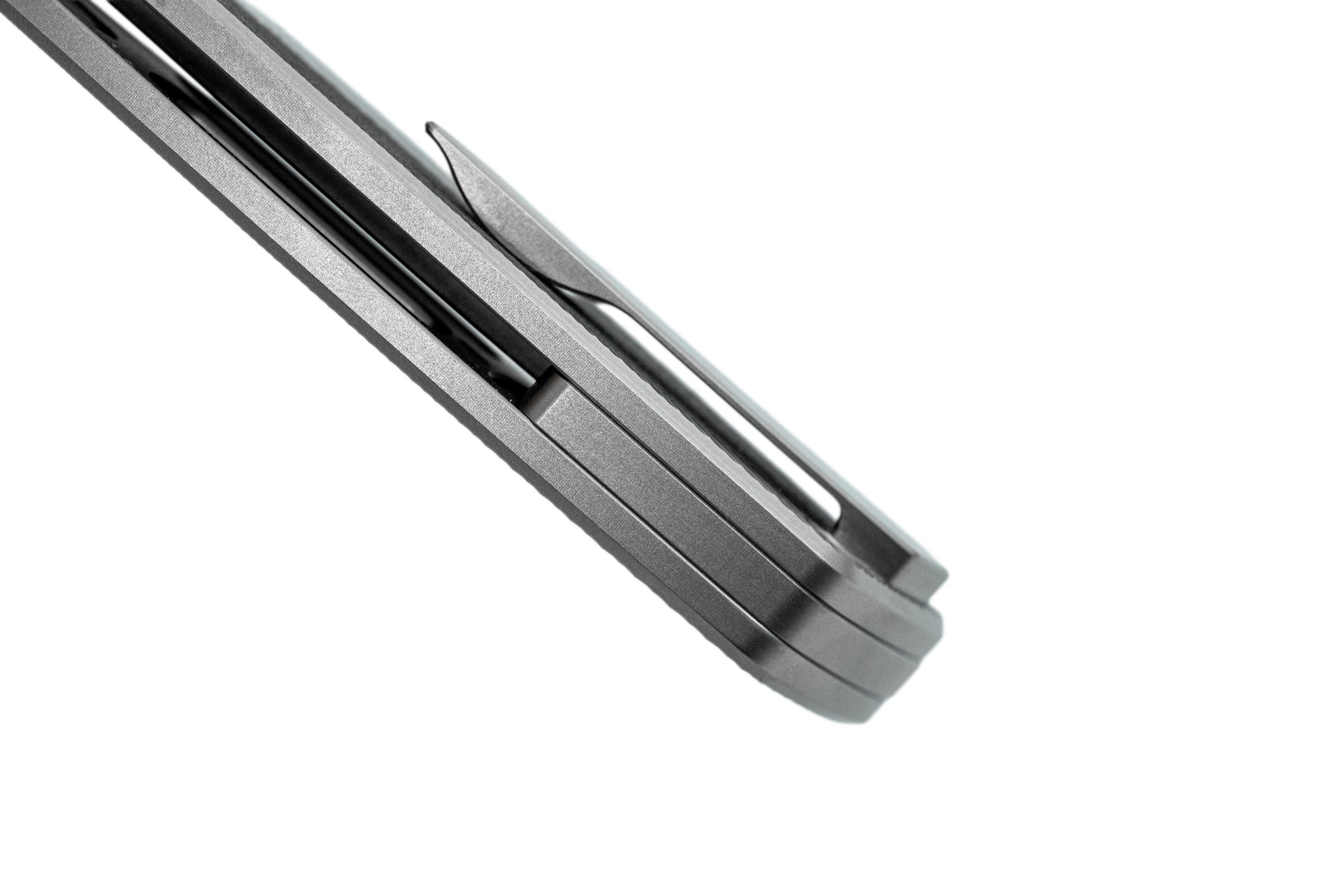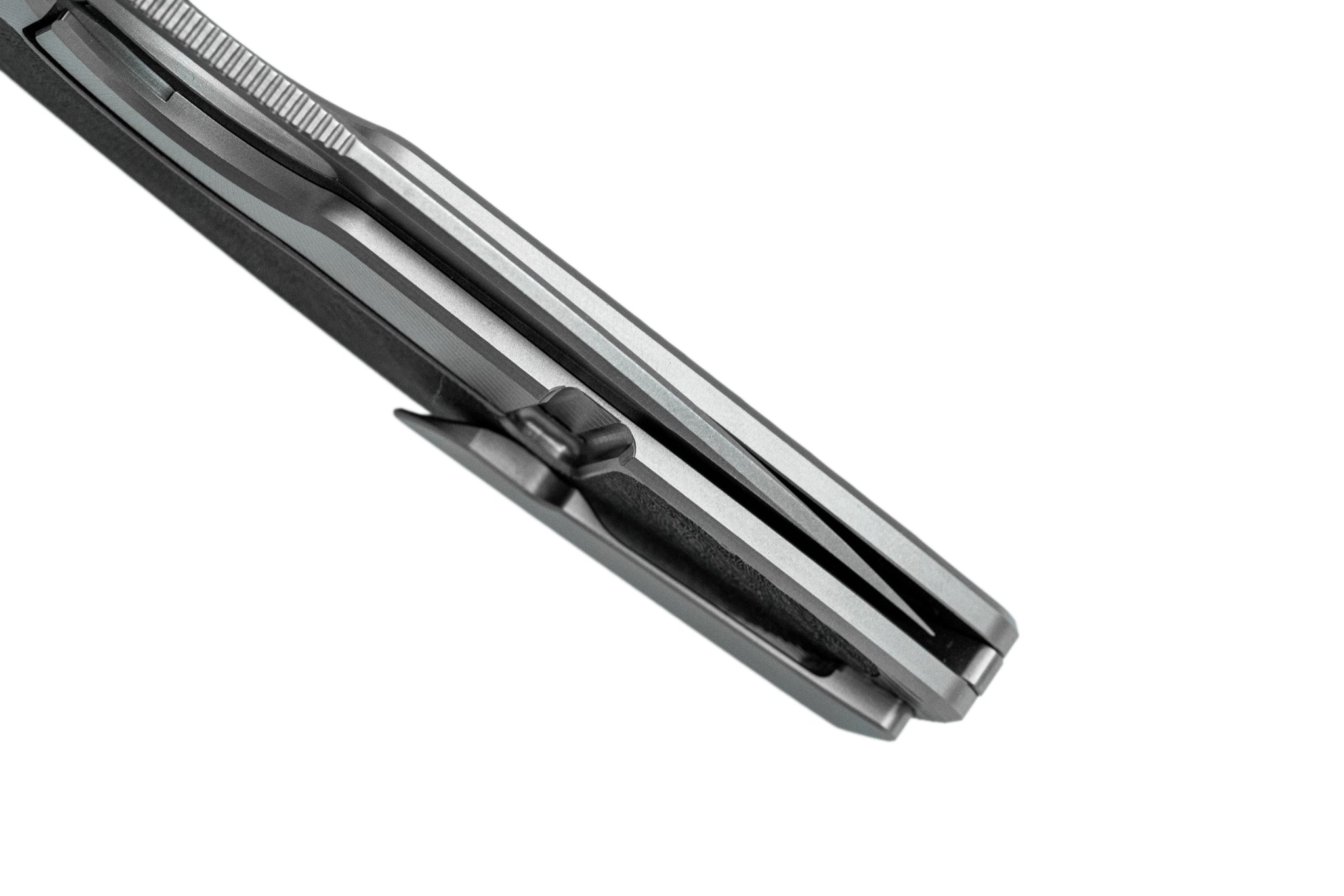 • Grade 5 Titanium pocket clip, spacer and hardware, Zirblasted finish