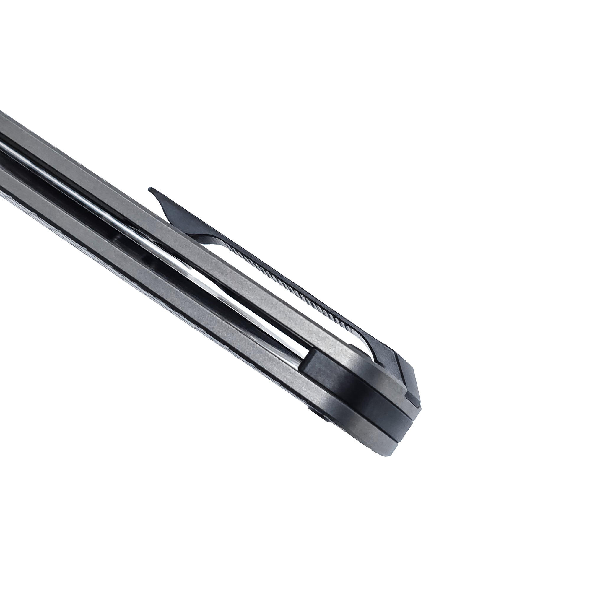 • Grade 5 Titanium pocket clip, spacer and hardware, Black anodization
